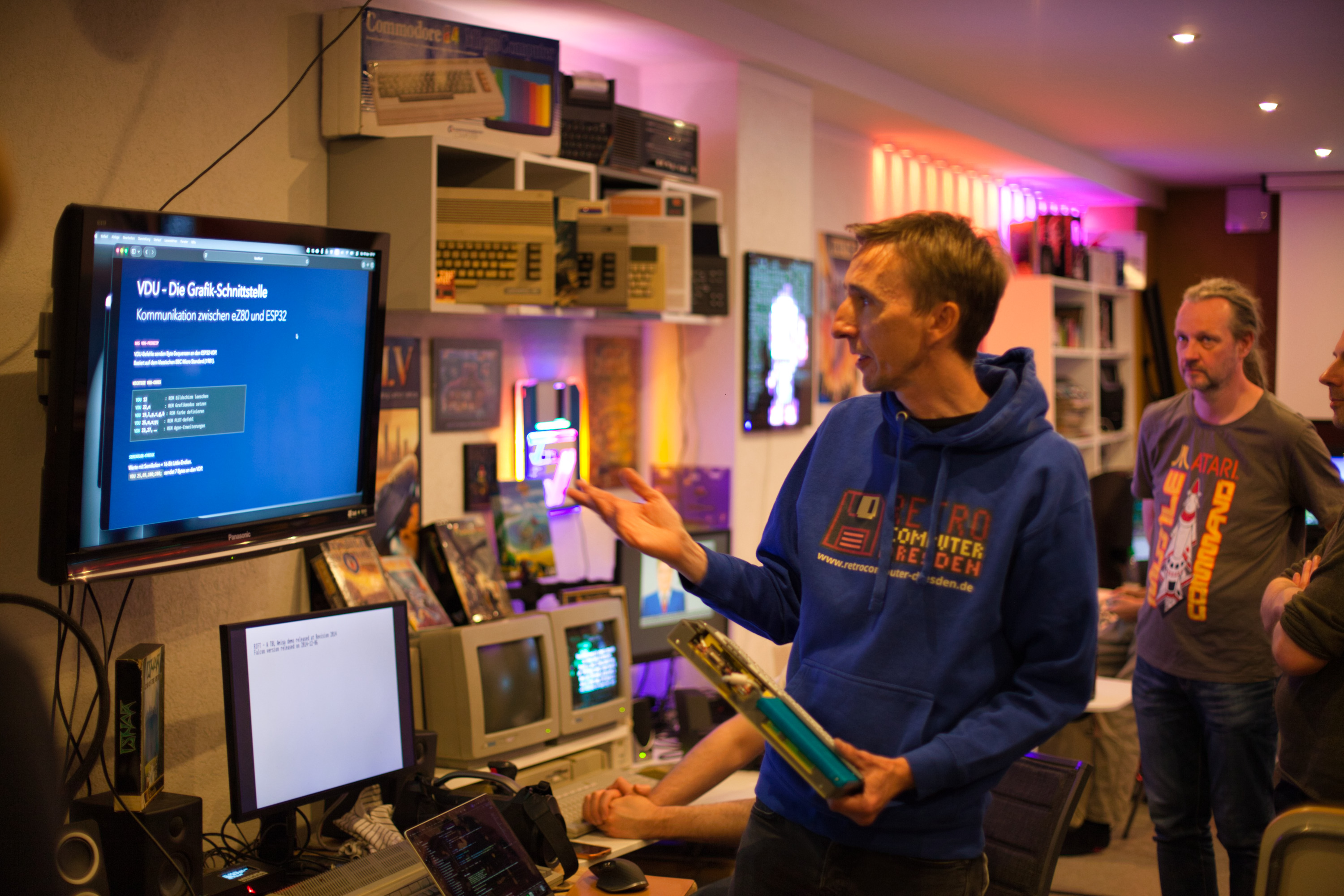 Die erste Retroparty 2026 ist Geschichte. Bei Königswetter hat der Verein wieder zur Retro-Computer-Party eingeladen. Diesmal stand sie unter dem Motto Atari-Heimcomputer. Dabei waren Modelle aus der 8-Bit Era wie dem Atari 400 oder dem Atari 130XE zu sehen sowie Modelle der 16- bzw. 32-Bit-Era wie der Atari STE, der Atari MegaSTE und der Atari Falcon030. Letzterer konnte per Knopfdruck in einen Falcon060 verwandelt werden und erlaubte den Genuss der in ihrer Anzahl überschaubaren Demos für 68060er Falcons. Wie immer waren alle Geräte natürlich funktionsfähig und luden zum ausgiebigen Ausprobieren der vielen Spiele und der Software ein. Es wurden auch alte und aktuelle Demos der Demoszene gezeigt. Als ungeplante Überaschung waren die Mitglieder der Atari Demo-Gruppe Escape (Escape) zu Besuch und gaben in persönlichen Geprächen Einblick in die Entwicklung der bekannten Demos. Vielen Dank!